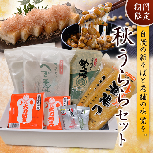 新そばを自家製粉した「挽きたて」の生へぎそばにぴったりの詰め合わせセットです。